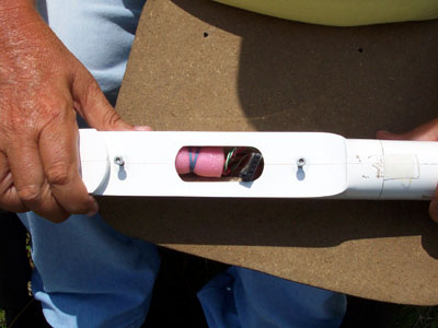 ![]() Jeff Cheechov's RAM3 tucked in the wing saddle of his Polecat Aero Sidewinder II DLG. |