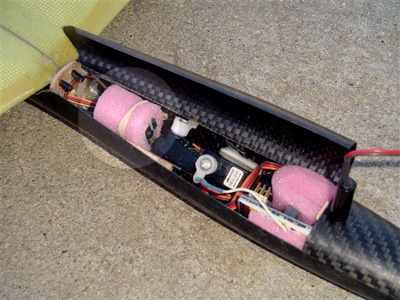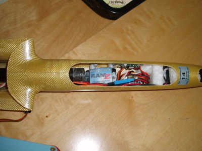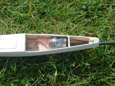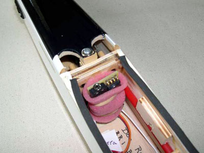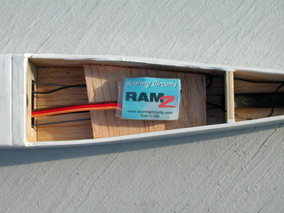![]() Bob Park's Taboo GT with a RAM3 and LiPo battery tucked neatly in the wing saddle. |