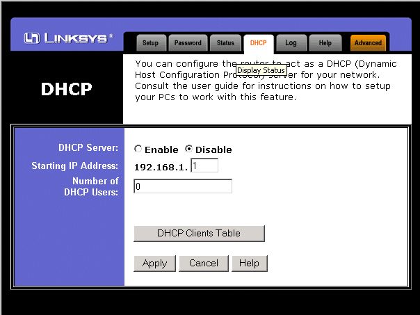 Linksys DHCP Setup