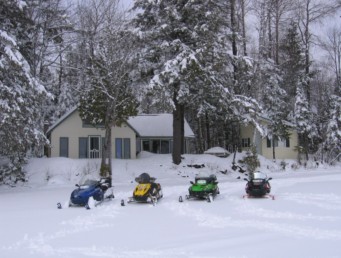 Things to do in the "winter months" ... Maine has over 13,000 miles of groomed snowmobile trails and from the cottage you can ride virtually anywhere in the State and into New Hampshire and Canada (Quebec and New Brunswick). Snowmobiling is a significant activitiy in Maine and most businesses cater to snowmobilers. We have even seen snowmobiles lined up at a Wendy's drive thru. A friend and I came back into the U.S. from Quebec on our sleds at U.S. Customs with the cars and trucks. Ice Fishing is very popular on the lake and dozens of fishing shacks will begin to populate the lake once the ice is safe. The busiest weekend of the year is during the Schoodic Lake Ice Fishing Derby which is held on President's Day weekend every year when hundreds of people hit the lake. Ice shacks, trucks, campers, ATVs and snowmobiles can be seen all over the lake. Some people take the fishing seriously but for most it is a social event. Downhill sking is available in Greenville at Big Squaw Mountaing Ski Resort. The mountain is just over an hour from the cottage. Many folks also cross-country ski in the area and there is also a big dog sled race in Brownville every winter. |