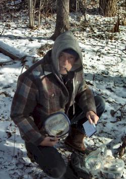 Thanksgiving Day with the hospitality of the Vermont in-laws, as is our habit these many years. "Let's see what we can find," I says to JR, opening up the laptop and ripping his phone cord out of the wall. Thanks be to God! A cache within a mile of the house - we can get it before the turkey comes out of the oven! So we did. The drive and the hunt took about twenty minutes. My first out-of-state find.